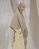 Desain belahan di bagian depan dengan panjang yang berbeda memberikan tampilan flowy dan memudahkan styling, tetap menjaga kesan syar’i yang anggun dan modern untuk aktivitas sehari-hari.