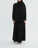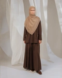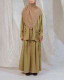 Oneset dengan desain modest dan siluet loose yang memberi kesan bersih, ringan, dan elegan. Atasan dengan potongan drop shoulder menghadirkan tampilan relaxed namun tetap rapi, dilengkapi bukaan full hidden button yang fungsional untuk daily wear. Detail saku depan dengan aksen buckle menambah sentuhan minimalis tanpa mengurangi kesan anggun.
