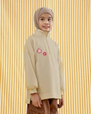 Sweatshirt anak dengan siluet A-line yang flowy, nyaman, dan flattering. Dilengkapi bishop sleeve yang memberikan ruang gerak lebih leluasa sekaligus menghadirkan tampilan modern. Menggunakan opening half-zip di bagian depan untuk kemudahan pemakaian dengan sentuhan desain yang stylish.