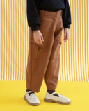 Aiden Pants Kids hadir dengan siluet barrel pants, memiliki potongan melengkung dengan volume lebar di bagian paha lalu menyempit ke arah pergelangan kaki, menciptakan tampilan modern dan stylish. Potongannya longgar dan nyaman, memberi ruang gerak lebih luas untuk anak yang aktif.