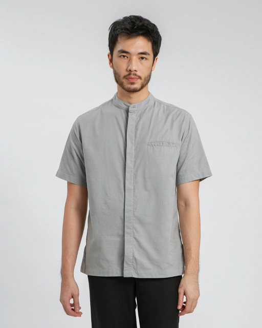 Jadira shirt Dad, Koko ayah lengan pendek dengan 5 ukuran, kerah model shanghai yang dipadukan dengan bukaan kancing dibagian depan hingga dada, model lengan panjang, detail weit pocket dibagian kiri depan menambah sentuhan stylish.