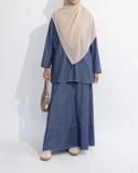 Menggunakan bahan Premium Denim yang lembut, tidak kaku, dan nyaman di kulit. Memiliki struktur kain yang rapi dan cukup tebal namun tetap breathable, sehingga tidak panas saat dipakai. Karakter kainnya kuat, awet, dan memberikan tampilan yang polished untuk pemakaian jangka panjang.