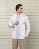 Serene Shirt hadir dengan siluet clean dan tegas, dilengkapi kerah shanghai dan detail yoke di bagian belakang. Opening hidden button memberikan tampilan yang rapi, Tersedia lengan panjang dan pendek dengan lengan panjang bermanset kancing serta hidden pocket fungsional. Dihadirkan dengan motif eksklusif perpaduan geometric dan monogram pada latar, serta aksen geometric pada plaket, manset, dan kerah untuk sentuhan modern yang standout.